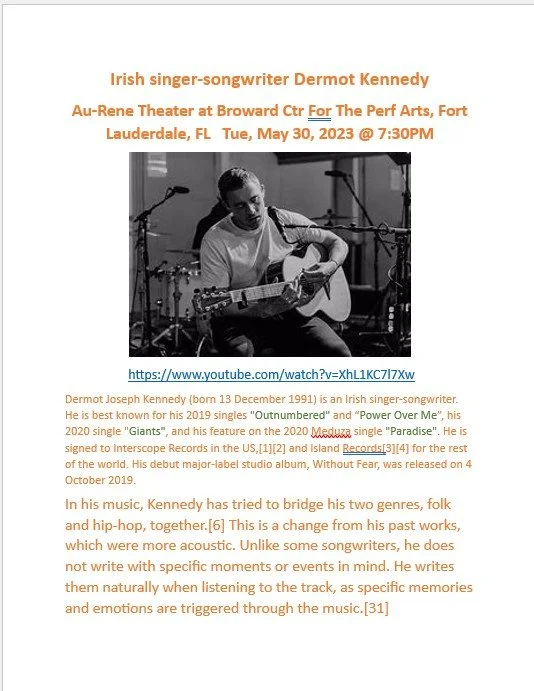 Irish singer-songwriter Dermot Kennedy Tue, May 30 @ 7:30PM Au-Rene Theater at Broward Ctr For The Perf Arts, Fort Lauderdale, FL