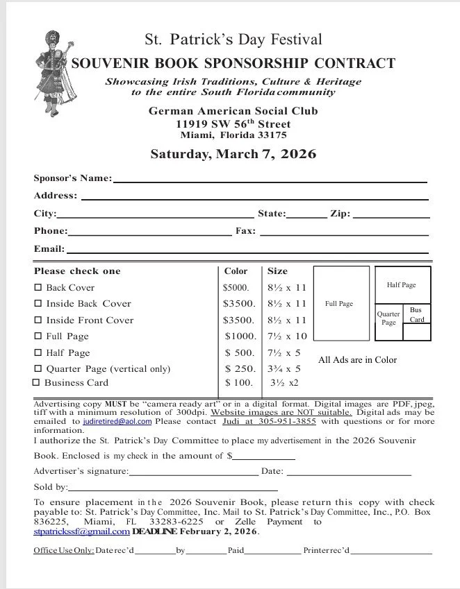 Advertising copy MUST be “camera ready art” or in a digital format. Digital images are PDFs, jpeg, tiffs with a minimum resolution of 300dpi. Website images are NOT suitable. Digital ads may be emailed to judiretired@aol.com Please contact Judi at 305-951-3855 with questions or for more information.